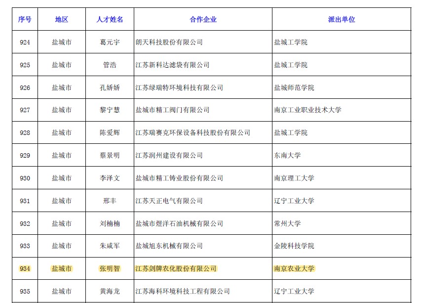 年江苏省科技副总项目拟入选对象公示,我院张明智副教授与合作企业江苏剑牌农化股份有限公司联合申报的科技副总项目入选。