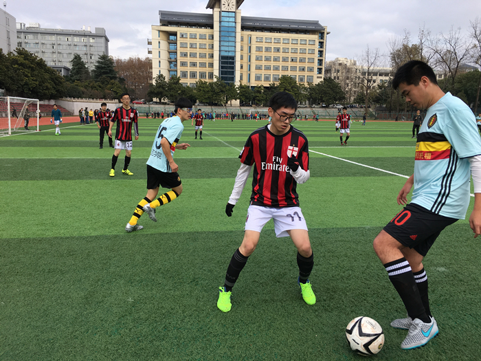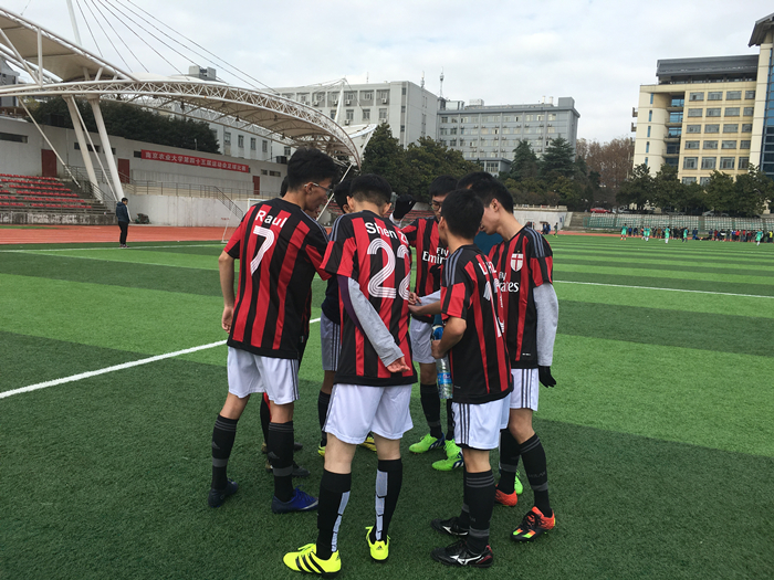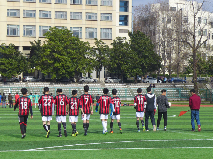 上半场比赛中,园艺院一开赛便连续进攻,我院球员积极防守,门将尽力拦截,但因首赛的拘谨以及实力悬殊,上半场0:4大比分落后。中场休息时,球队教练卢风帆鼓励队员积极调整情绪,同时改变下半场战术,告知球员们放松下来,享受比赛。