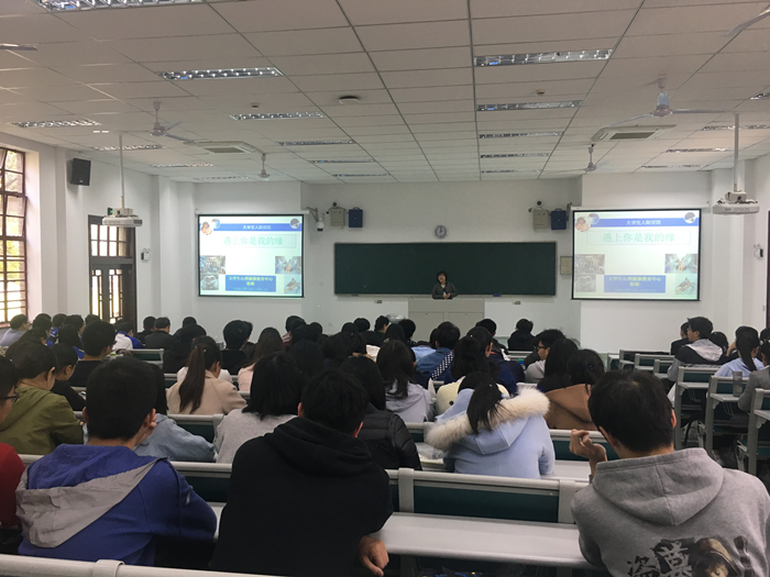 特邀校大学生心理健康教育中心主任徐梅老师,在主楼133教室面向学院全体大一学生进行了主题为《遇见你是我的缘》大学生人际交往专题培训。学院党委副书记刘照云老师,辅导员黄芳老师以及全体2016级学生参加了此次培训。