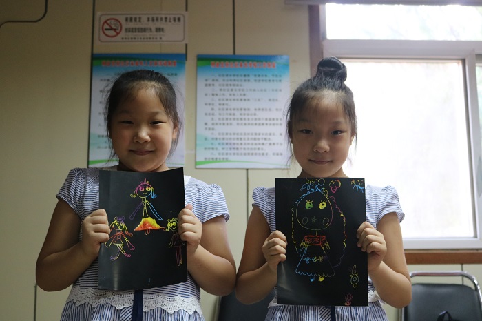 随后进行的“手工纸花”与“刮画纸”活动,用简单的材料、丰富的色彩,激发小朋友的热情,提高他们的动手能力。看着孩子们如花的笑靥,队员们也体会到了一种付出过后的欣慰。