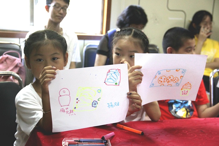 孩子们展示手绘作品